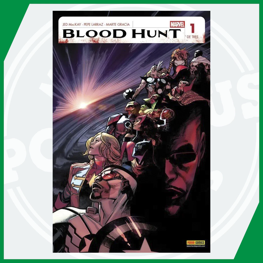 ¡Es el evento más sangriento de Marvel hasta ahora! Los cielos se han oscurecido, el sol esconde su rostro ante la carnicería que se avecina. Los hijos de la noche, los vampiros, han emergido de los rincones oscuros y ocultos del mundo como uno solo, dispuestos a ahogar el Universo Marvel en sangre. La última noche de la Tierra ha caído… ¿Podrán los héroes de este mundo condenado detener la marea de sangre que se aproxima? Únete a los Avengers, Blade, Bloodline, Spider-Man, Hunter's Moon, Tigra, Doctor Strange y Clea cuando comience el baile de la muerte en Blood Hunt.